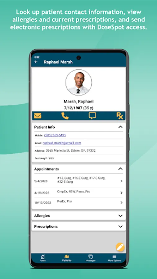 + View patient allergies and current prescriptions and e-Prescribe with DoseSpot access.