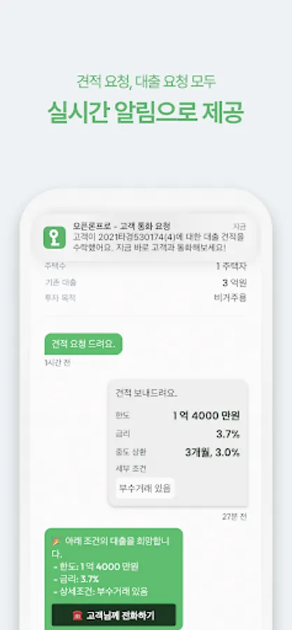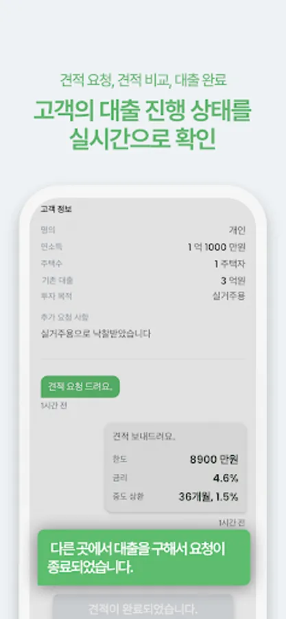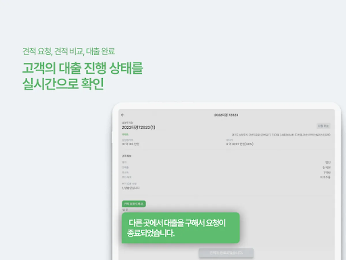-Check the customer's loan progress at a glance. When a customer's status changes, the latest status will be notified through an alarm.