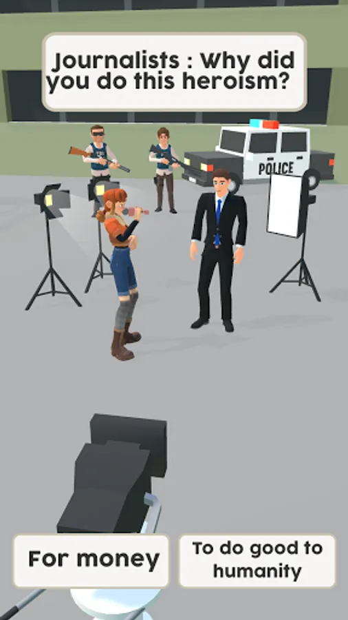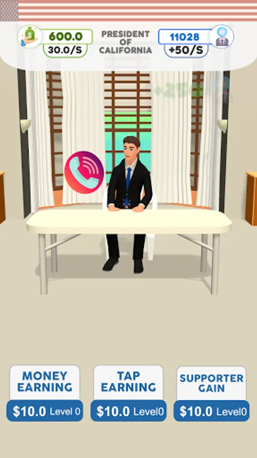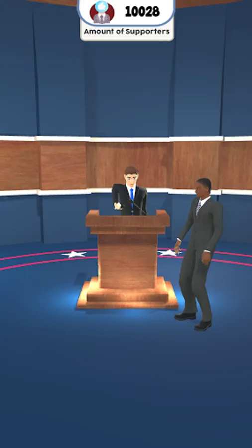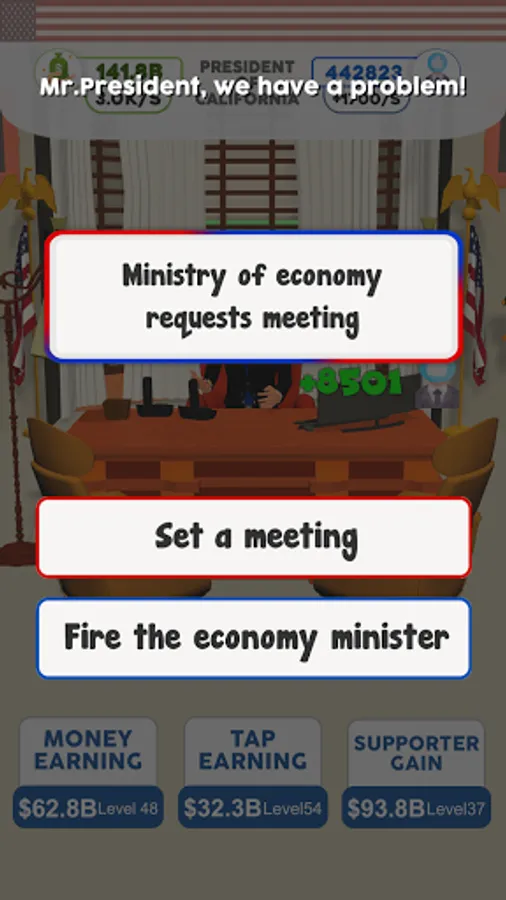 Choose your decisions. Get your supports. Increase their number. If you have enough supporters, they make you president. Upgrade your office collect your money.