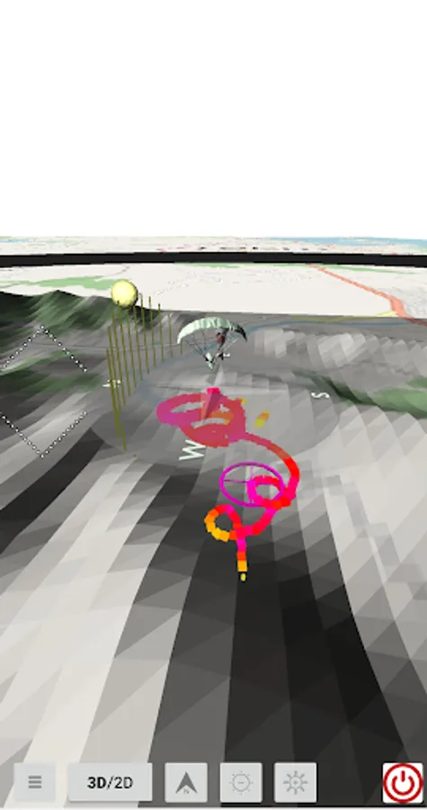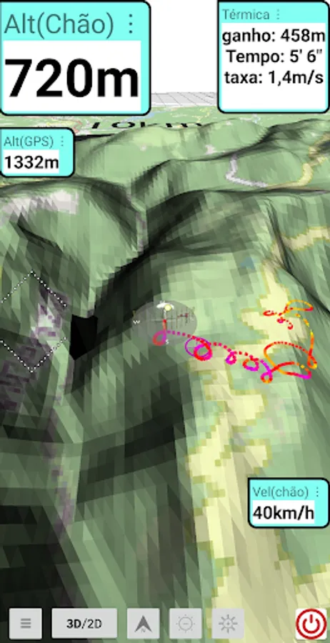 Free flight software. The goal is to support the pilot mapping the thermals through the 3D flight trail. You can test the application using an existing igc file and replay it. The software also has the ability to display flight information easily and intuitively through infoboxes. The pilot can choose the location of these infoboxes by dragging with his/her finger and also choose the text font size (information such as GPS altitude, altitude above groun level, speed over ground, etc.). There is also the possibility of downloading elevation data from each continent (this information is taken from the NASA project that is available for free through the SRTM project).