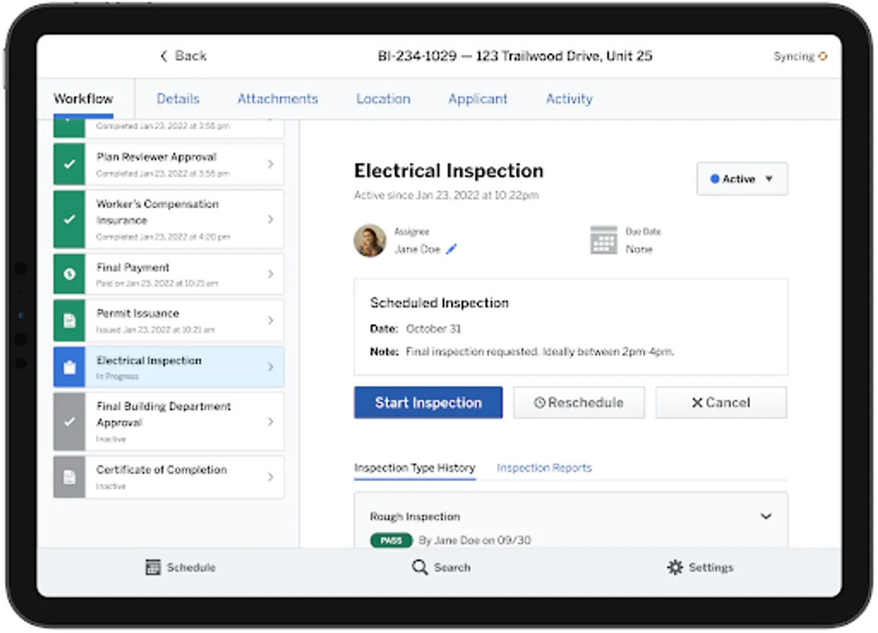 Simple and user-friendly, the OpenGov Mobile App allows inspectors to efficiently conduct inspections needed to approve permits and licenses -- with or without an internet connection. In addition to the ability to work offline, inspectors will be able to easily access their inspection schedule and view all the details from the application such as the applicant information, property details, uploaded attachments, and issued documents. Inspectors can also add comments for fellow permit reviewers or the applicant, ensuring that results are clearly communicated and open tasks are resolved as quickly as possible.
