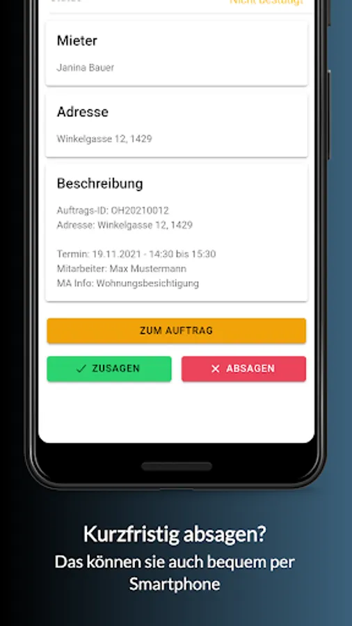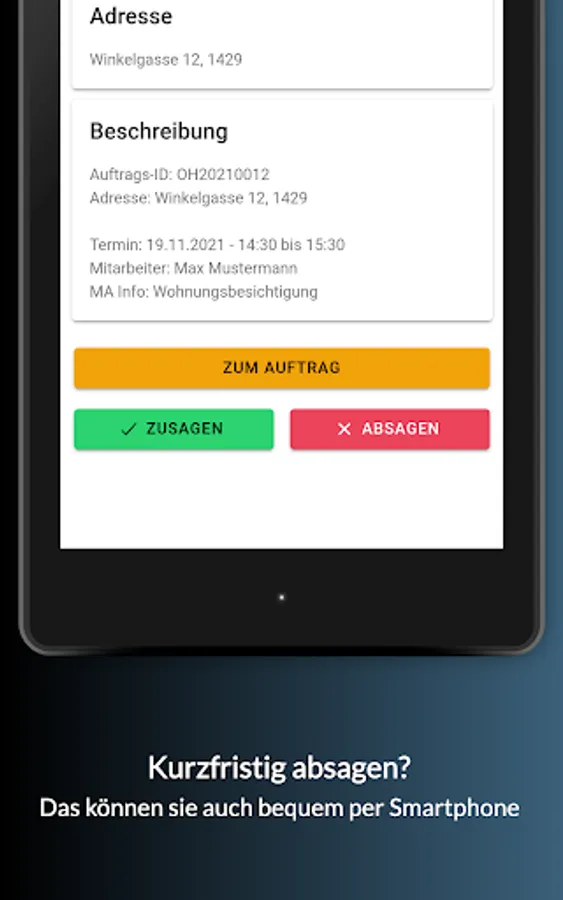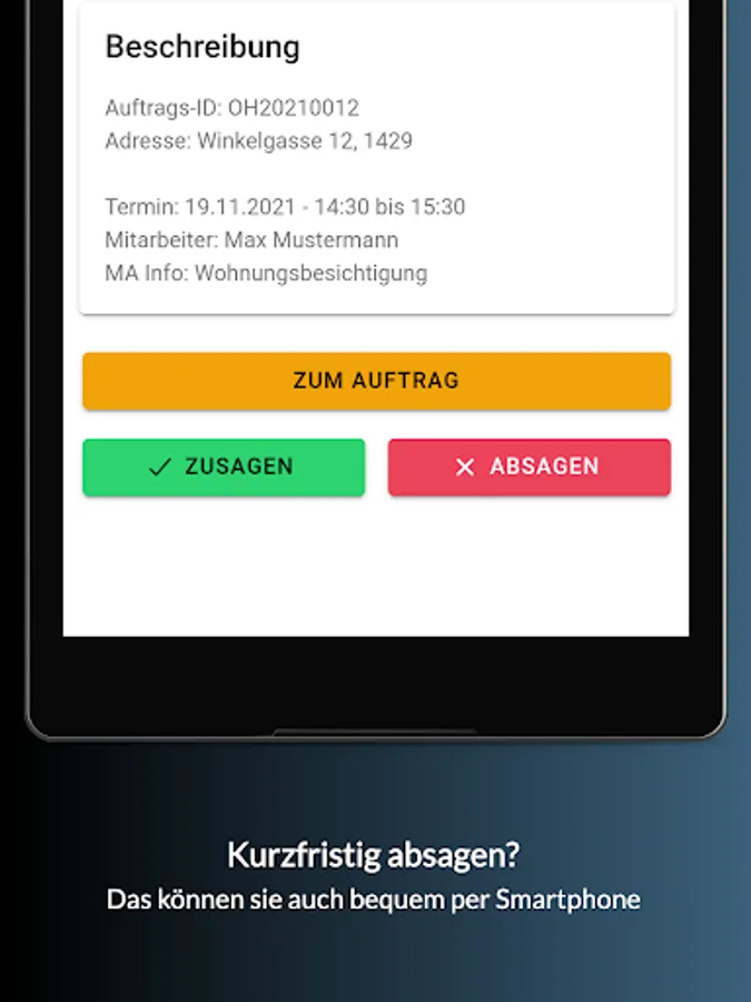 The office can transfer tasks to employees via the browser. These are displayed on the app and can be edited.