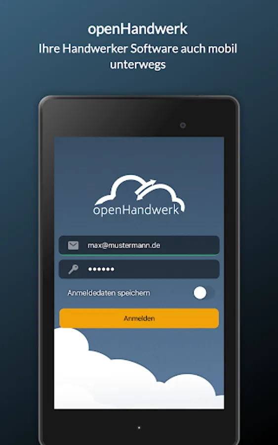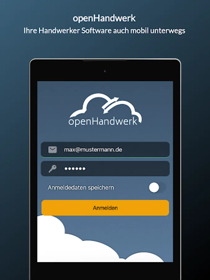 To use the openHandwerk app, you need a test account or a customer account with openHandwerk. You can get this on our website.