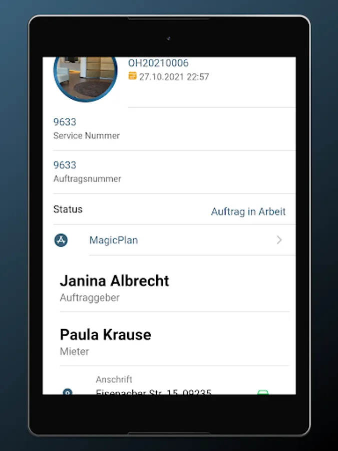 Via the integration with magicplan you are able to trigger measurements and floor plans from openHandwerk to magicplan. The floor plans and measurement data created are then stored in openHandwerk in your order or offer folder.
