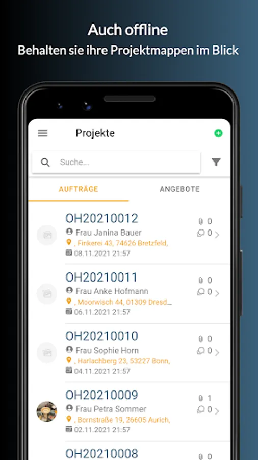 With the openHandwerk app you can write offers and invoices. Service texts from the web can also be displayed on the app. The created invoice or offer can then be sent to your customer as a PDF
