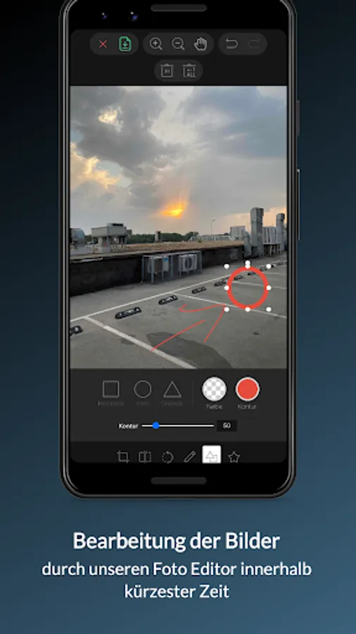 Document your construction sites or maintenance measures with photos from the photo gallery or directly from the camera and record the project progress. Images can be freely named when uploading.