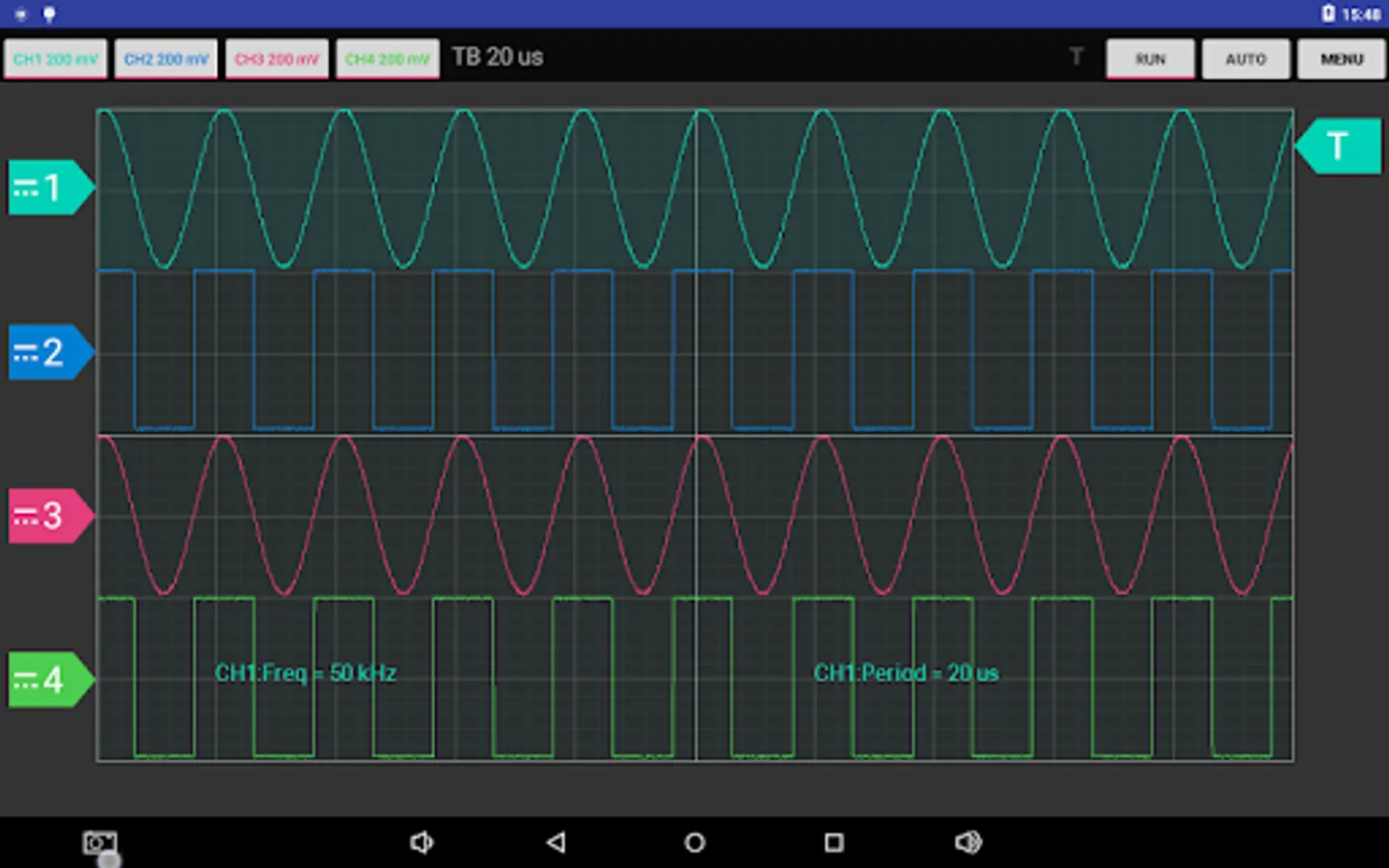 The Hantek60x4 device have no official Android APP. This is a reverse engineered implementation of the 4 channel digital storage oscilloscope Hantek6074BE from Hantek.It communicates with the device over USB via OTG adapter.
