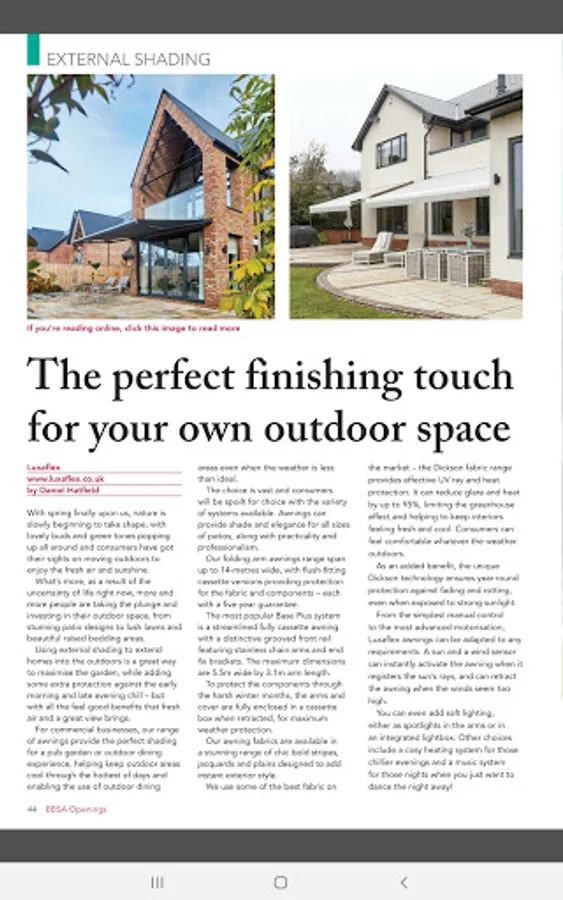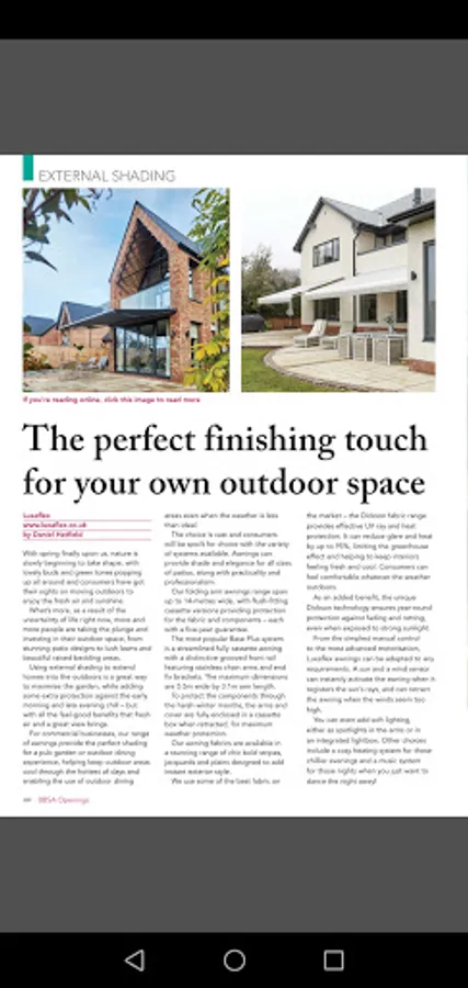 The BBSA's Openings magazine offers the most comprehensive and up-to-date coverage of the interior and exterior shading industry in the UK.