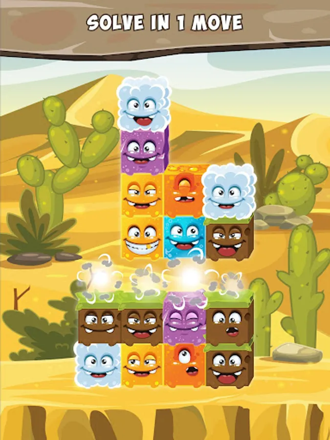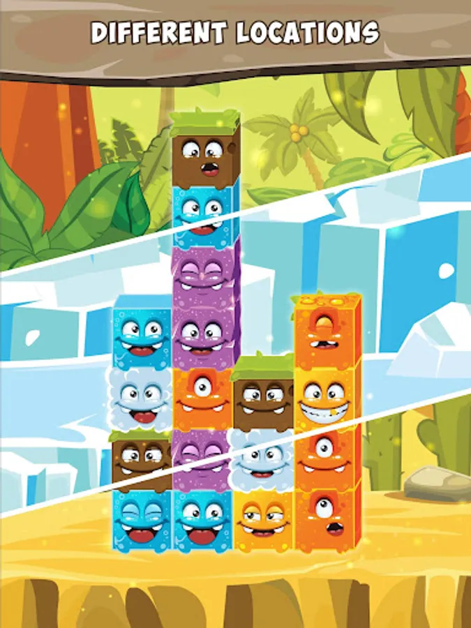 Solve this puzzle made of 240+ levels spread over 9 different locations: Jungle, Desert, Ice Age, Volcano, Seaside, Magic Forest, Christmas Village, Candyland and Technoworld.