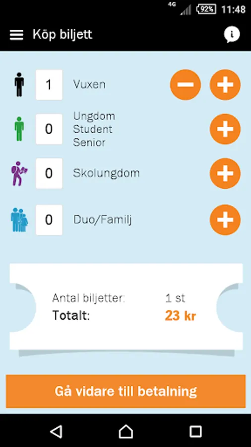 - Sales of single tickets for Karlstad city (receipt by e-mail)