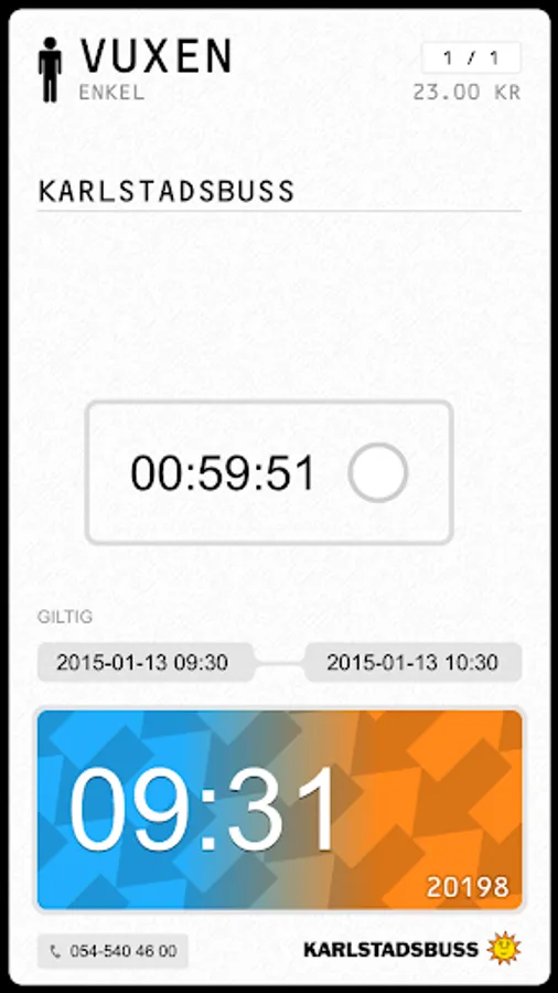 Karlstadsbuss official app helps you to search travel and buy single tickets for bus trips in Karlstad locality. Payment is made by Mastercard or Visa. You decide when the ticket shall apply by activating prior to boarding and therefore can buy your ticket in peace and quiet before the trip.