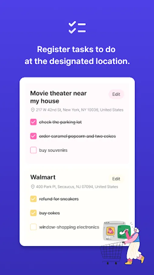 - You can register locations where you have tasks to do, such as home, office, laundry, and supermarket.