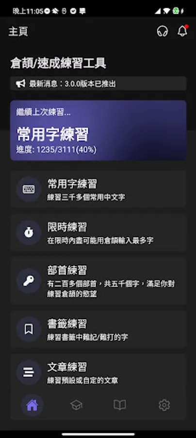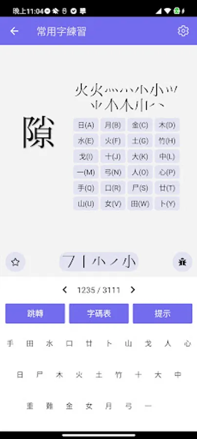 Cangjie/Quick Practice Tool contains 3000+ commonly used traditional Chinese characters, which will be updated and added regularly. You can enter the Cangjie code corresponding to the text through the built-in Cangjie keyboard. Go to the previous one, think about it, and accumulate experience.