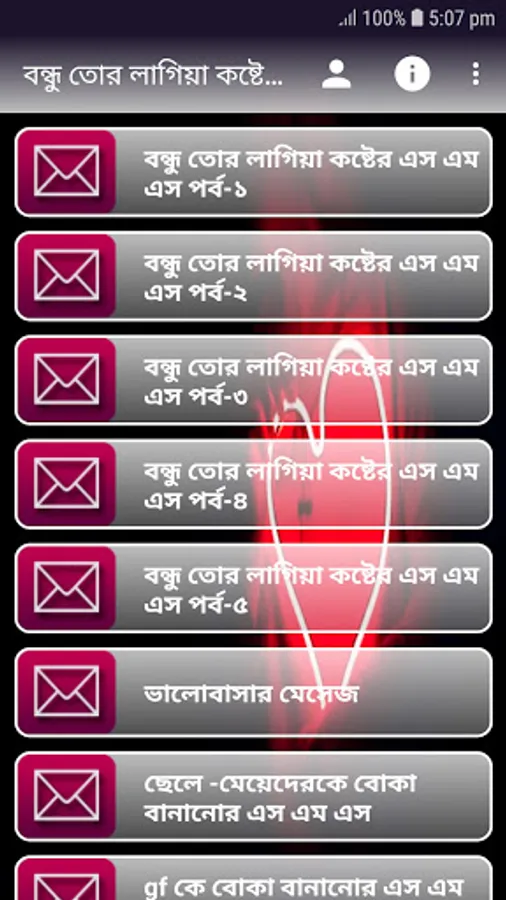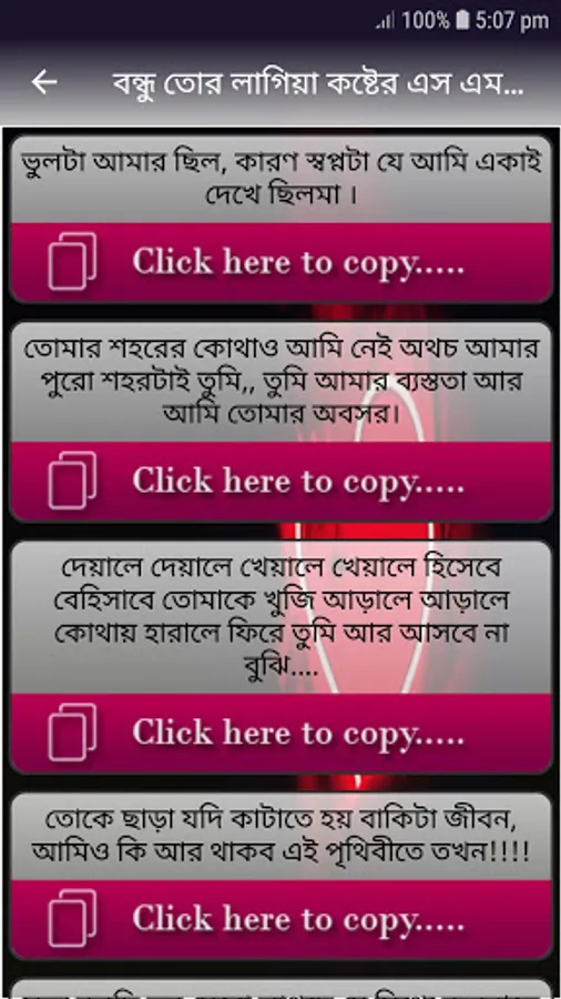 এই অ্যাপটি সাজানো হয়েছে সকল ধরনের কষ্টের এসএমএস কষ্টের ছন্দ ইত্যাদি ।