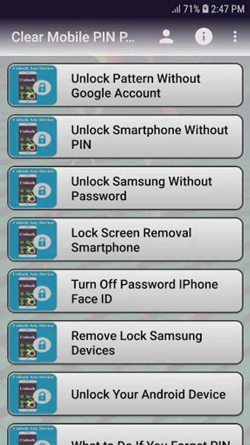 There is no one in the present age who does not use an Android phone Forgot your Android or other type of phone security PIN or password? Don’t panic, there is always a solution. Mobile Phone Unlock Assistance is a free Android app that guides you to almost all types of security locks and clearing mobile phone passwords.