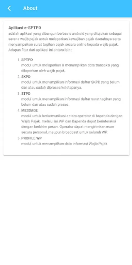 eSPTPD Pangandaran is an application system built based on Android available on Playstore, which is intended as a means for taxpayers to report their local tax obligations and submit online tax invoices to taxpayers & can be accessed anywhere. This application is connected in real time with the Pangandaran Regional Tax Information System (SIPADARAN) which is already running at the District Revenue Agency. Pangandaran.