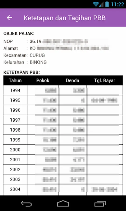 Land and Building Tax Information for the district area. Tangerang