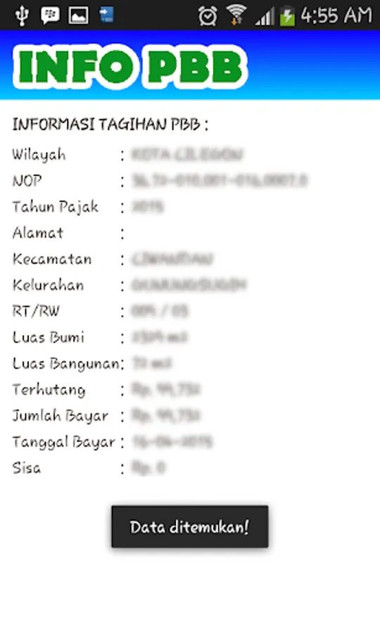 i-PBB is an application to obtain payment information of PBB (Pajak Bumi dan Bangunan), based on NOP (Nomor Objek Pajak).