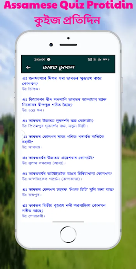 Quiz Protidin app covers all the sections for you study. Indian History, Indian Geography, Indian Assam History, Assam Culture, Modern Assam History, Important peoples of Assam, Important Places of Assam etc. all are covered in the app, which will immensely help you in your exam preparation.