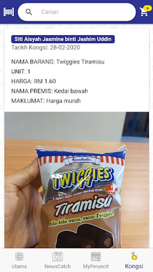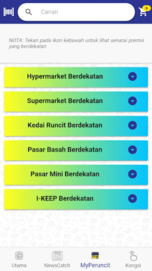 This mobile app is integrated with the Infopengguna web portal and MyHarga System which is available at https://pricecatcher.kpdn.gov.my and is designed to provide consumers with an easy tool to check the daily prices of all the basic grocery items (432 items at start) at all stores and markets in all areas in Malaysia. With the app, together with minimal internet access, users can check on demand the prices of the items and compare them in just a few touches. Users can then can decide where to purchase the items based on their needs and convenience.