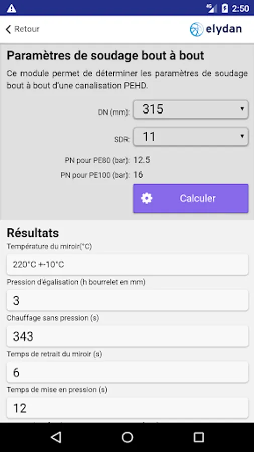 Elydan Calculators is an application designed to calculate the dimension of HDPE pipes.