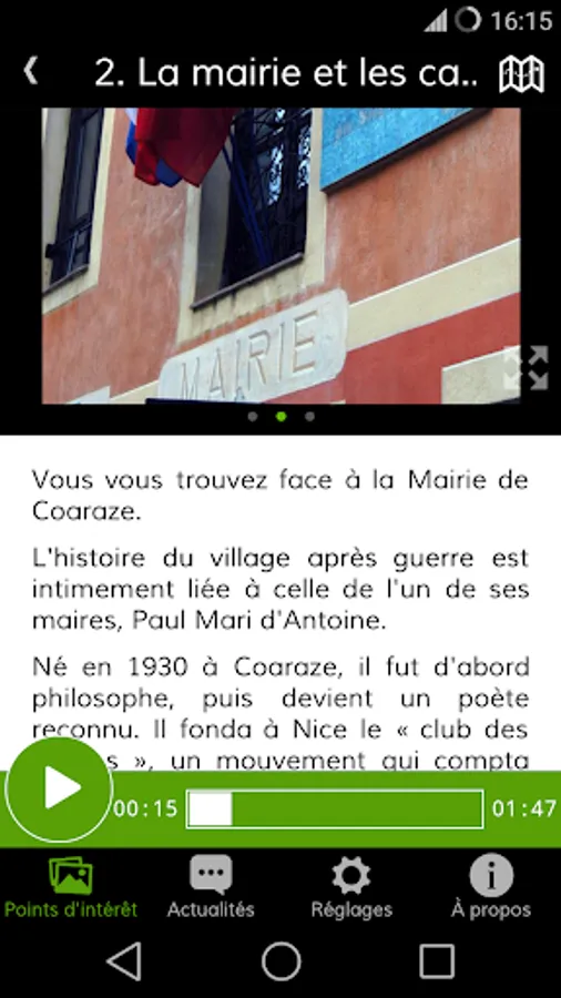 The application is available in English, French, German, Italian and Occitan. (In Occitan, only text is available, audio will arrive soon!)