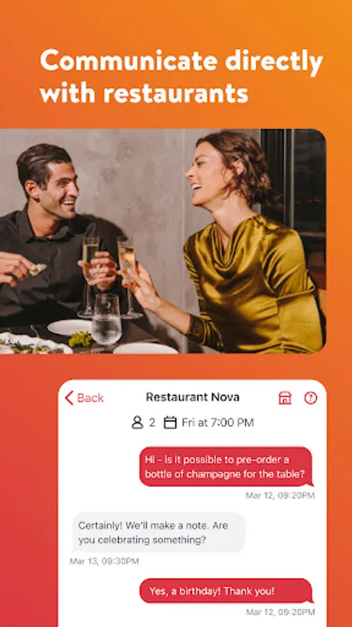 - Streamline your booking experience with new features such as direct messaging with restaurants hot table alerts