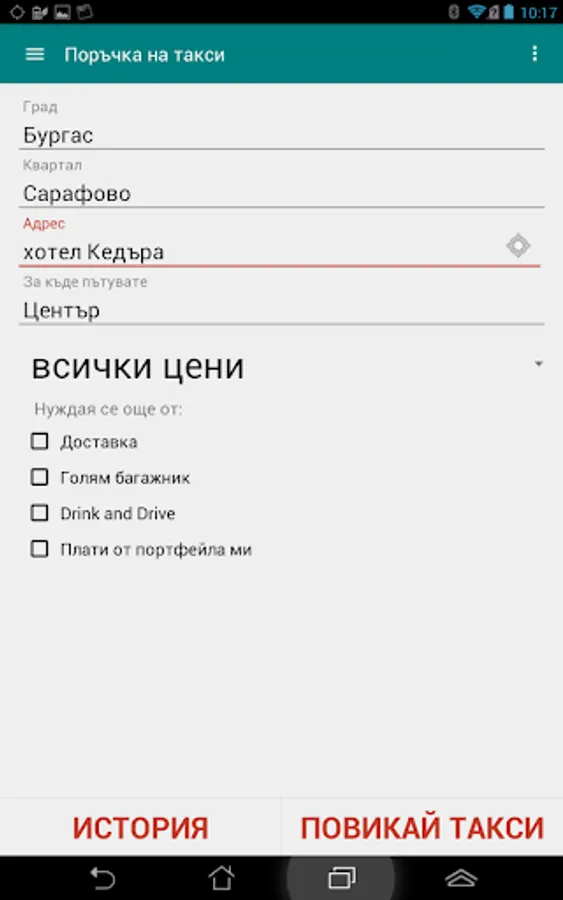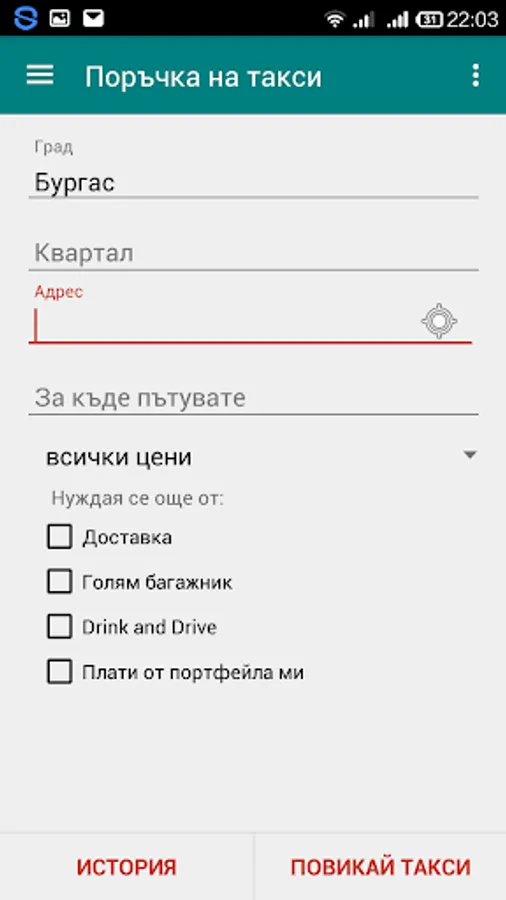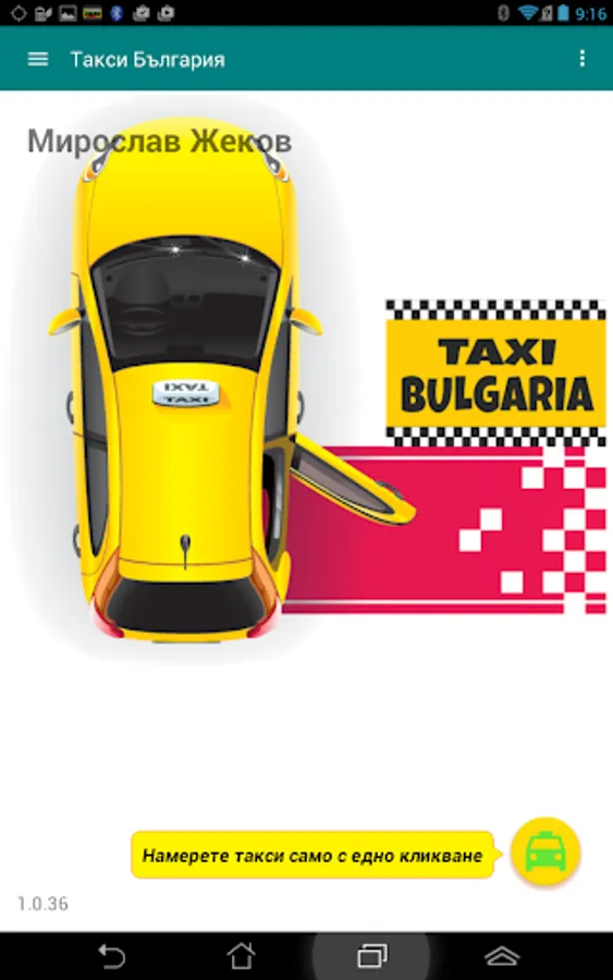 This free open source app is designed to improve taxi service for customers in Bulgaria. It uses Web services provided by taxi companies for internet communication with taxis - sending a new request, real-time monitoring of status and positioning of taxis, order history, leave feedback for quality of service and more.