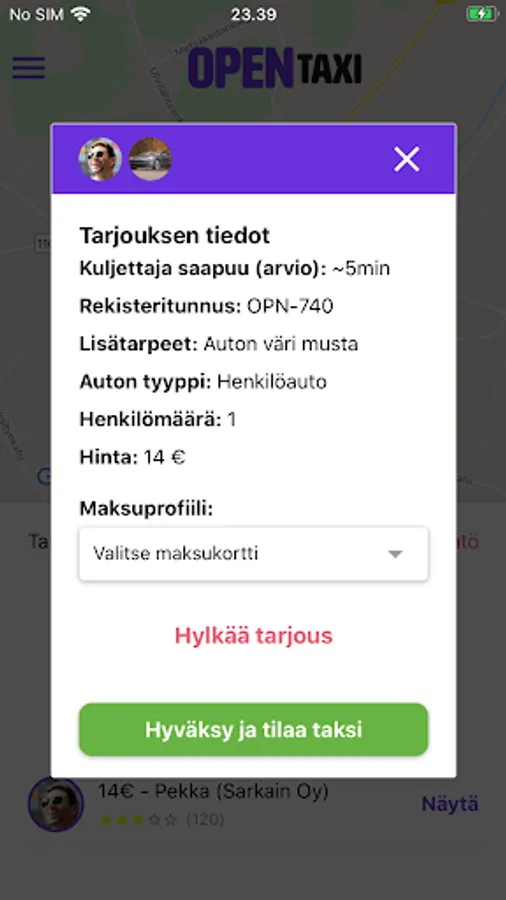 OpenTaxi enables transparent and free pricing of taxi trips, where the company determines the price of the trip itself. With the help of the nationwide OpenTaxi service, taxi companies get rides all over Finland. Return rides reduce idling and increase the profitability of companies. With a high-quality and reliable service, a taxi company stands out in the competition.