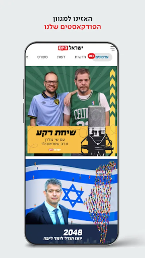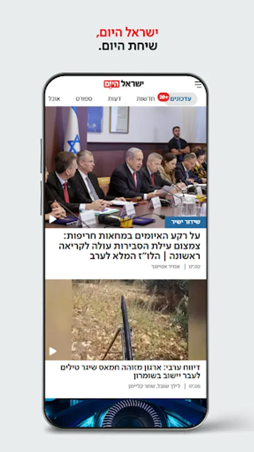 Israel Hayom's news app: Flashes, live reports around the clock, video and podcasts.