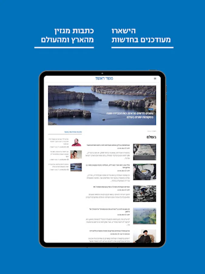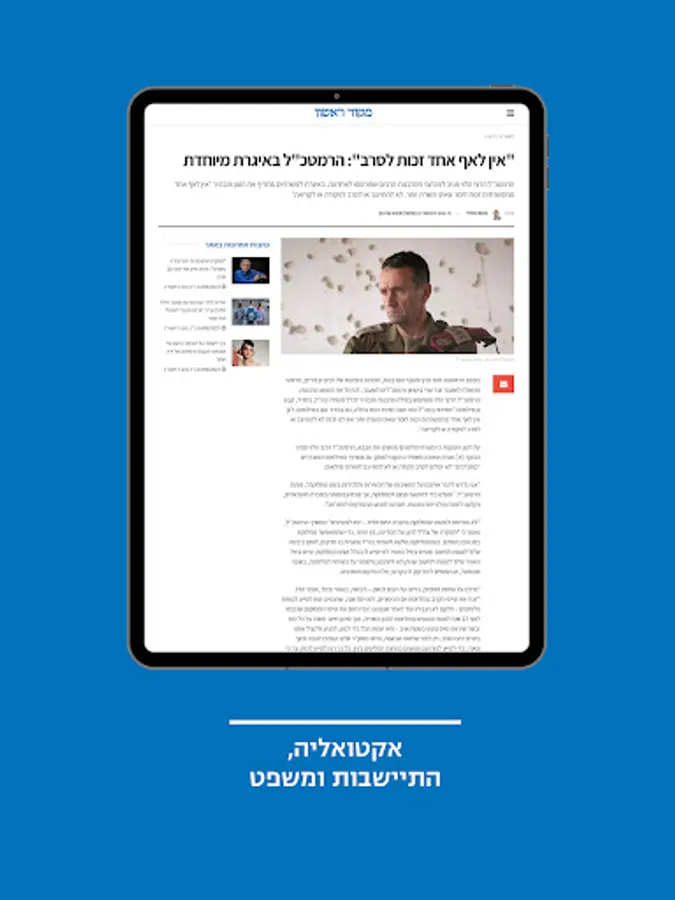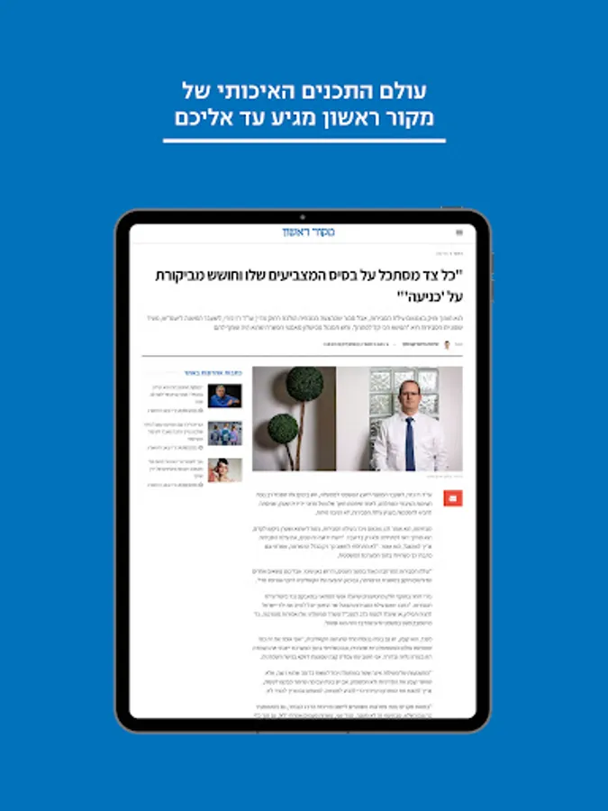 Among the topics that you can find in the first source application: news, commentaries, magazine articles from Israel and the world and essays on current affairs, politics, society, culture, family, and more.