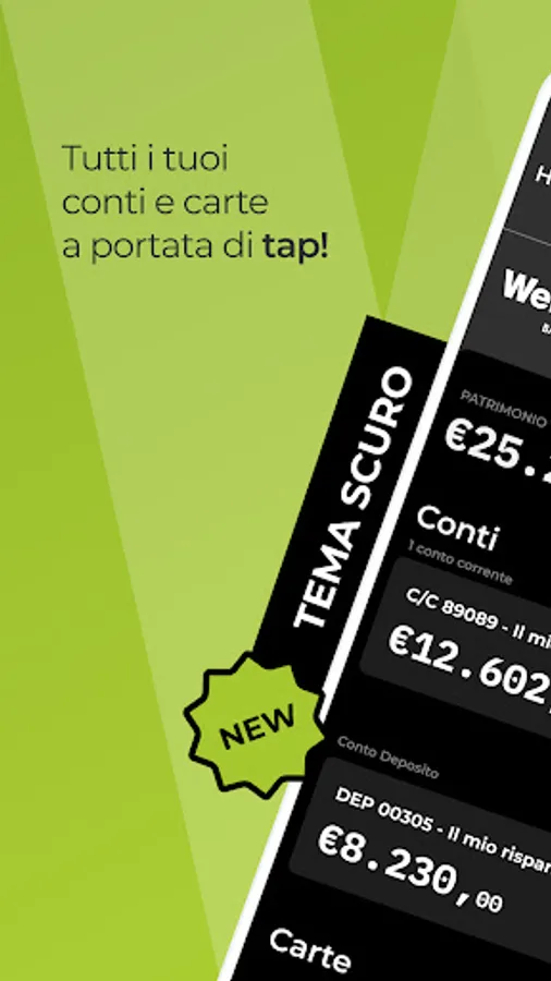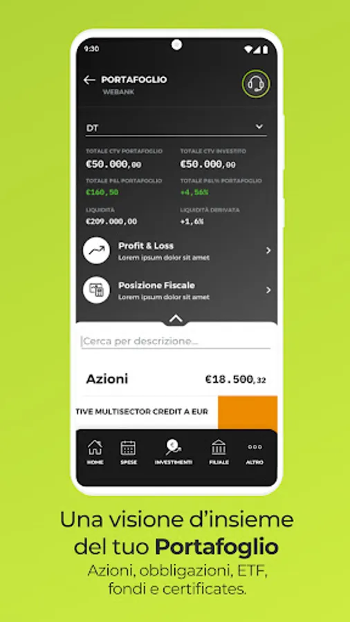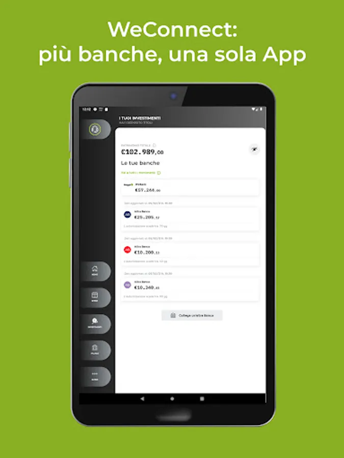 With WeConnect you also connect all your accounts and payment cards from other banks to your Webank app. You will thus have an aggregate view of the balance and movements.