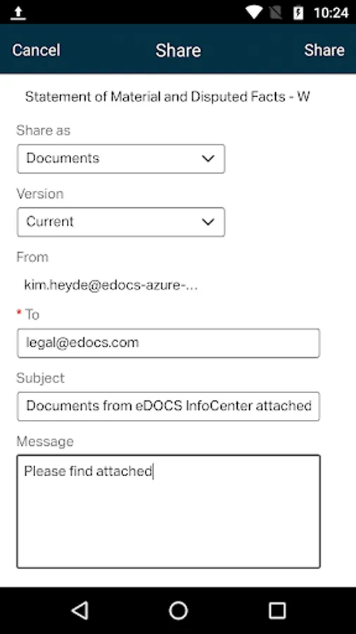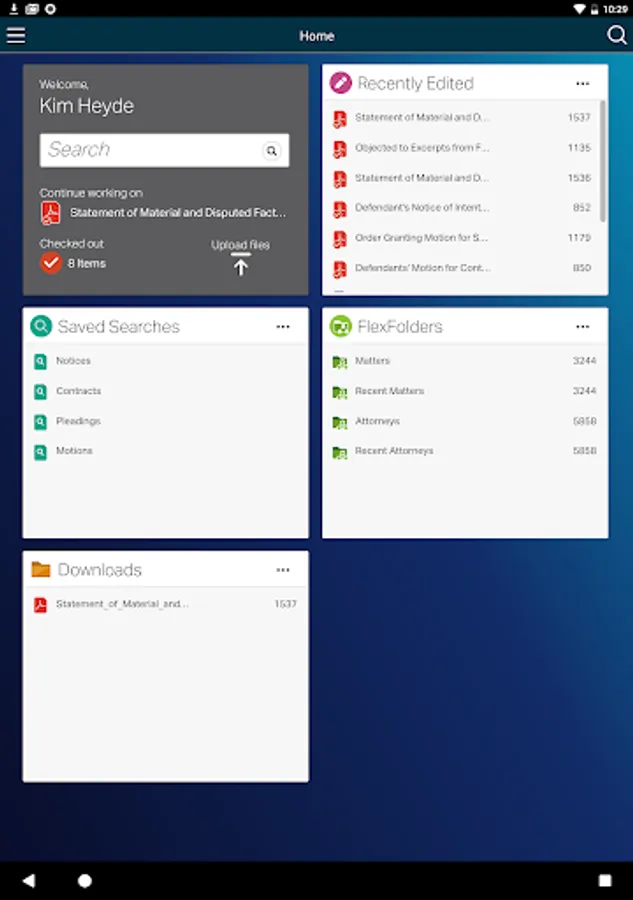 The new mobile app has a modern look that is easily personalized. It extends your InfoCenter desktop configuration providing seamless access to the eDOCS library across devices - from desktop to tablet to phone. When your professionals leave the office, they can access recently edited documents, search and locate important documents, share documents with clients or outside council, securely modify documents, check out, edit, check in, download for offline use and more.