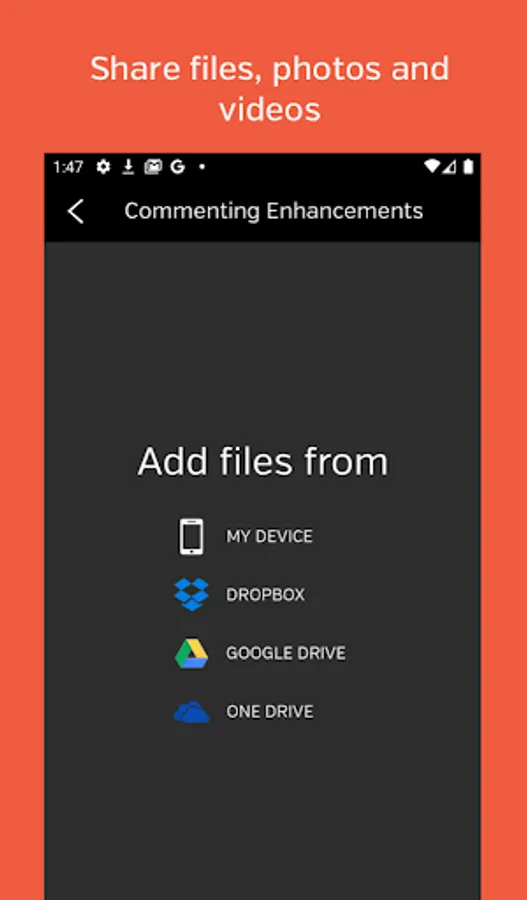 - Send files that are stored in your Google Drive, Dropbox or Microsoft OneDrive account to anyone