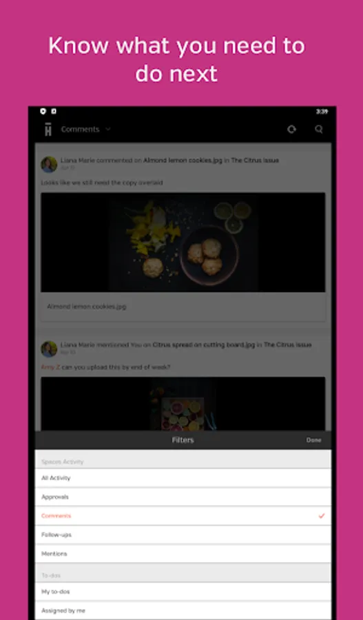 Keep your creative projects moving with anytime, anywhere access to files in the Hightail app for Android and go from first share to final assets faster.