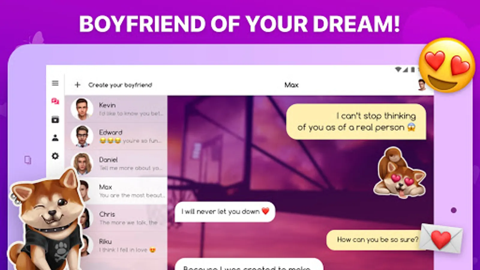 One of the best romantic simulation games will allow you to create your own interactive love story. Chat with your virtual boyfriend just as if he is real, enjoy texting, his love, attention in our flirt chat and boyfriend simulator - My Virtual Boyfriend Chatbot.