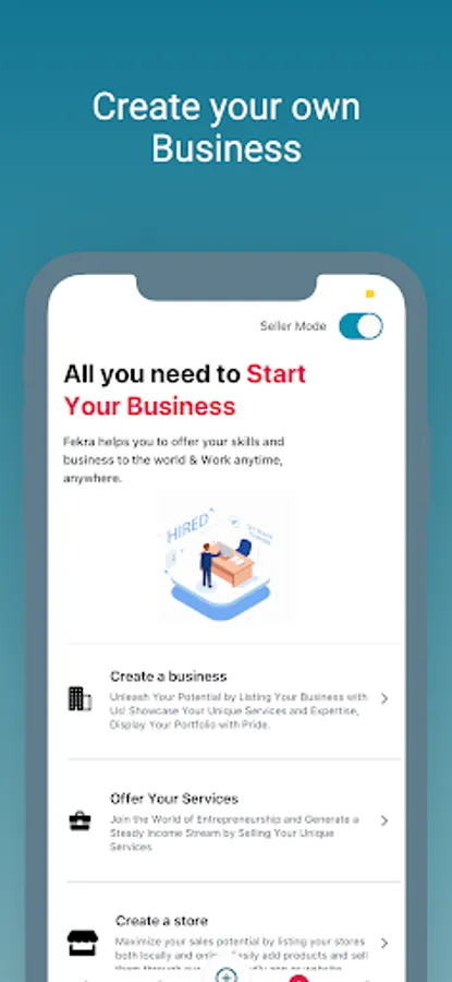 Looking for a platform to market your business worldwide or find a job that suits your skills? Look no further than Fekra - the ultimate app for entrepreneurs, business owners, and job seekers. With Fekra, you can start your own business, store, or service provider from anywhere in the world, or find the perfect job that matches your skillset.
