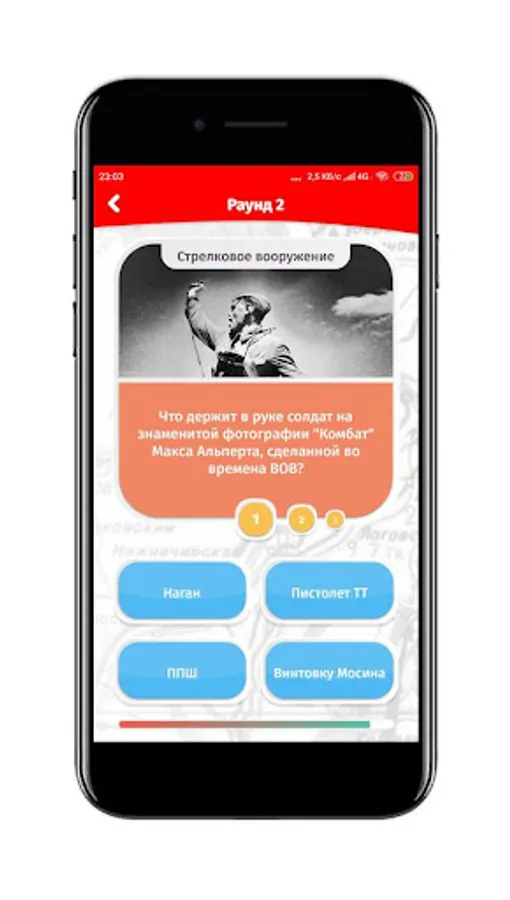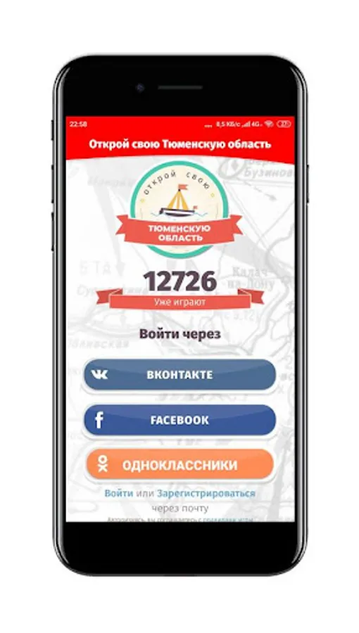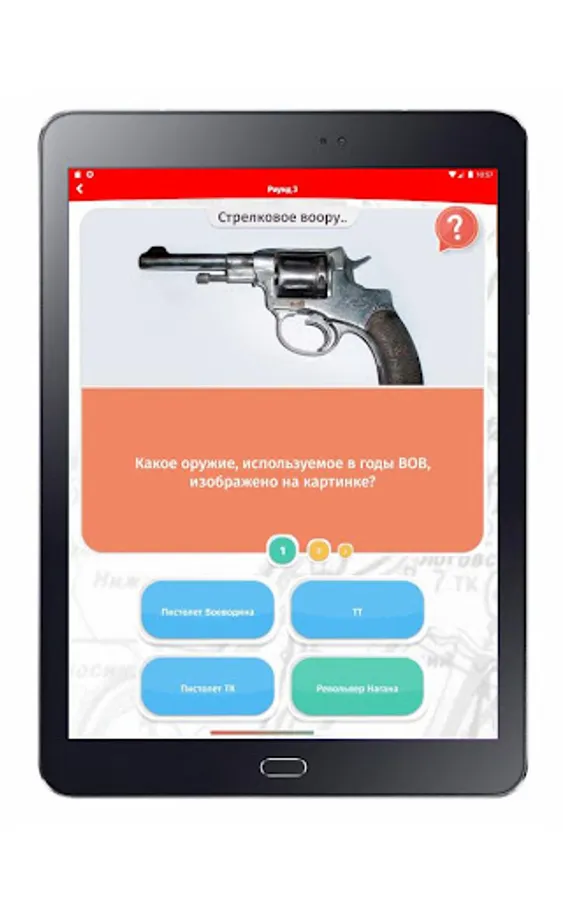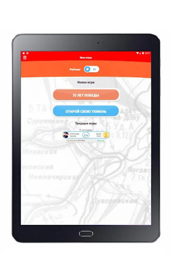 Mobile application-quiz "Discover your Tyumen region" with textual and visual questions about the history of Tyumen and the Tyumen region.