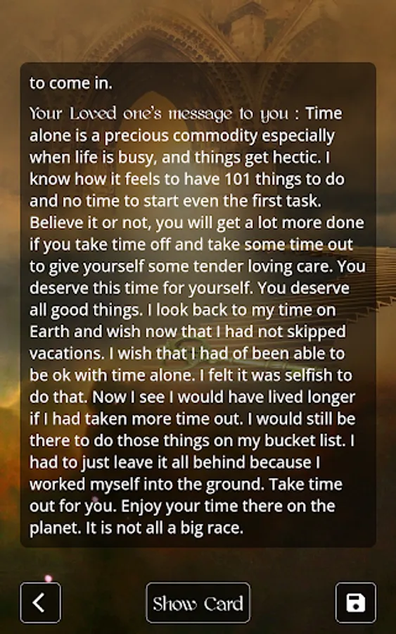 These cards may give you a baseline to develop further communication with your passed loved ones. You may want to choose a daily card and take your time to contemplate on what your passed loved ones want to say. As guides, deceased loved ones will take you as far or as deep as you want to go. Ready to begin? Just choose a card, read it through, then close your eyes and allow further messages to come into your awareness.