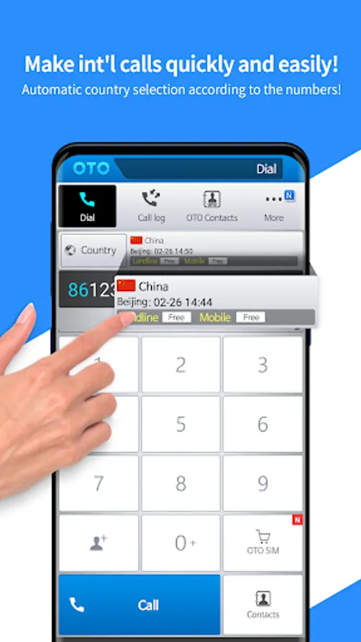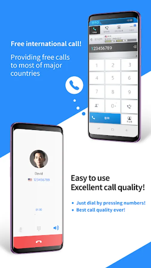 OTO Free International Call app provides free international calls and it doesn't charge any international call fee, while it uses your additional/video call minutes given monthly by your carrier company.