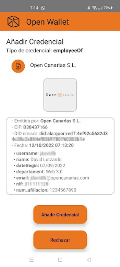 Tool to have a European digital identity. Use of digital identity based on Alastria.