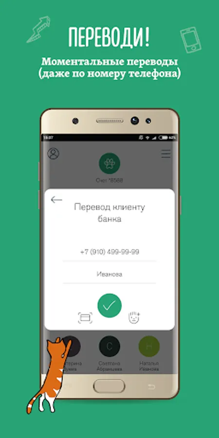 Available in the application: transfers between your accounts and deposits, transfers to accounts of other individuals and legal entities, payment of payments to the budget (including subscription to traffic police fines), payment of utilities (including subscription to accounts from GIS Housing and Utilities).