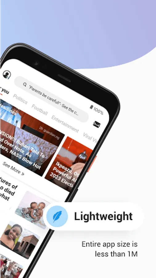 The package size of the entire App is less than 1MB. While solving your concerns about mobile phone memory, it also provides rich, personalized, timely, and diversified news and content services. It can simultaneously support 60+ different countries and languages, allowing you stay connected with the world.