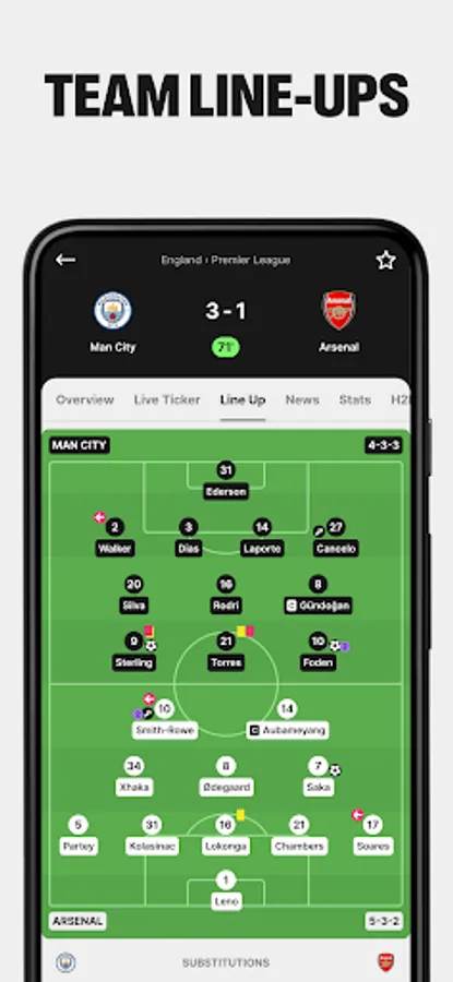 Select your favorite team or league to get reminders about lineups, events, and upcoming matches.