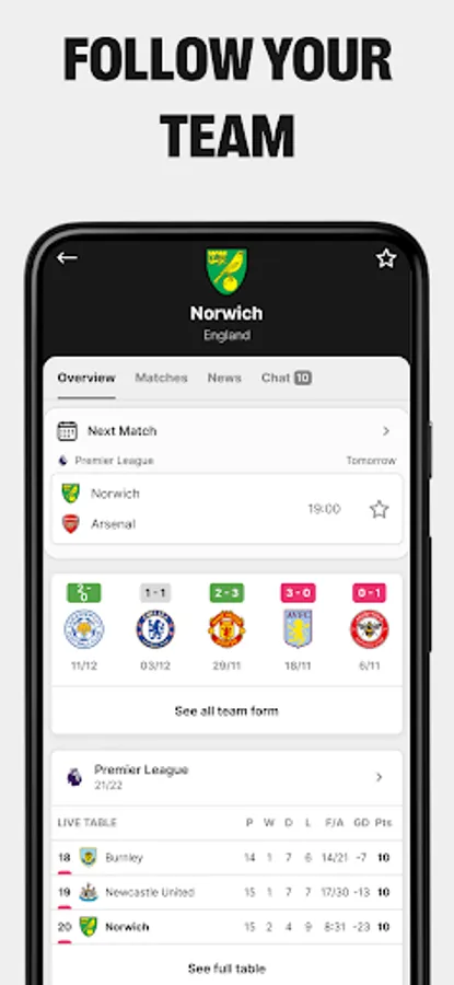 ✔ Follow matches with live stats and commentary