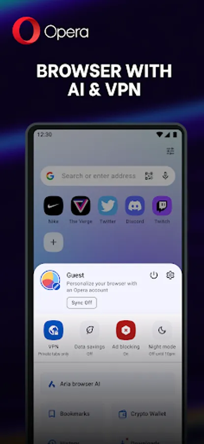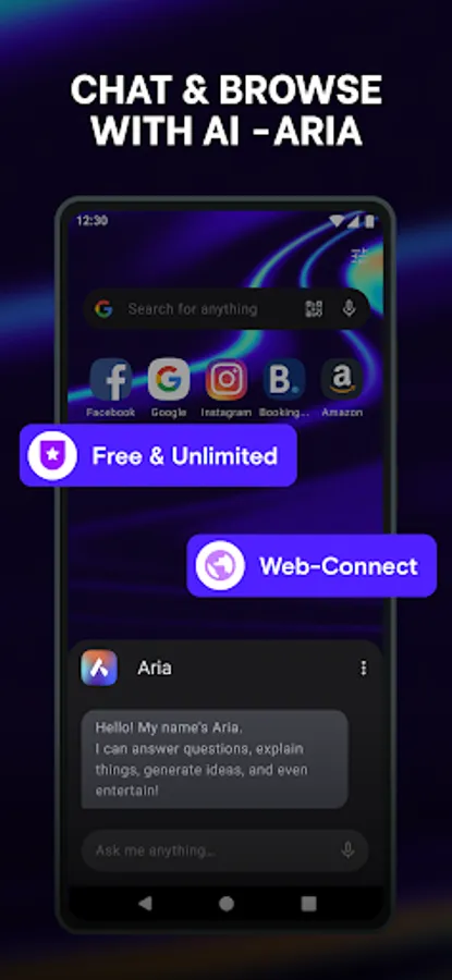 Meet with Aria, powerful AI browser right on fingertips, chat and browse with the native AI in Opera unlimited. Opera secures web privacy with ad-block, free VPN, features the private and personal browser.