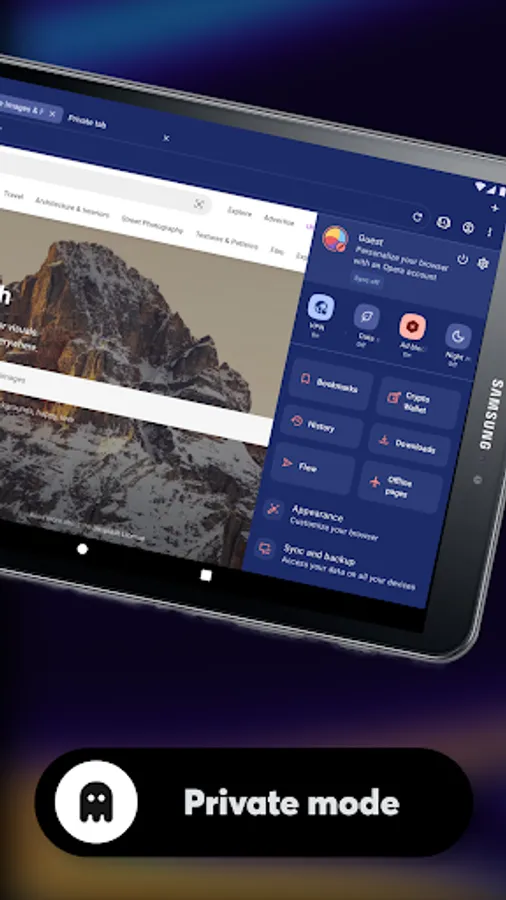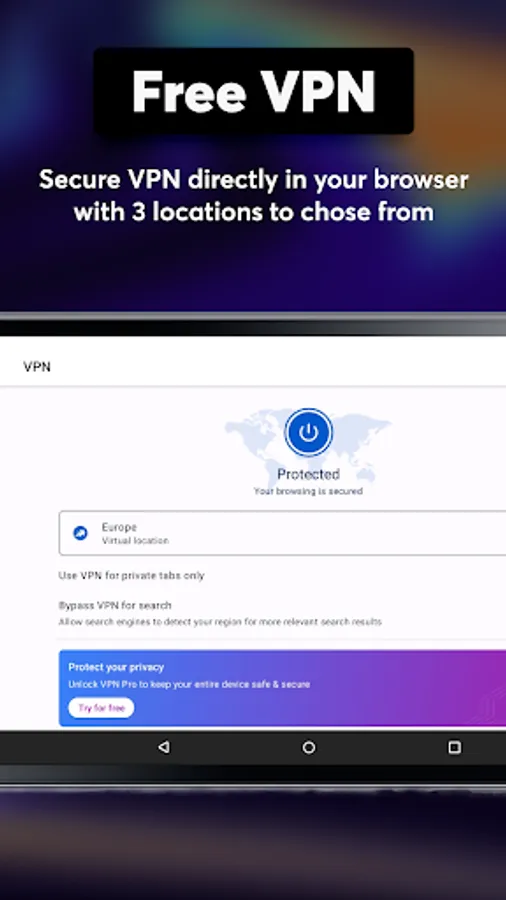 Upgrade web privacy with built-in VPN & ad-block. Use private search and private tab to go incognito on the web without leaving a trace.