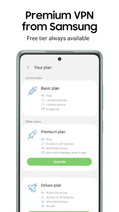 There is an option to control your ad experience. You can choose to view ads inside the app or enable premium mode, which grants you access to powerful app management features and unlimited usage of savings and privacy services. In exchange, it shows you ads in the Samsung lock screen while your device is plugged in charging. Choose how you want to experience ads, and enjoy the powerful and free data savings and privacy protection services from Samsung.