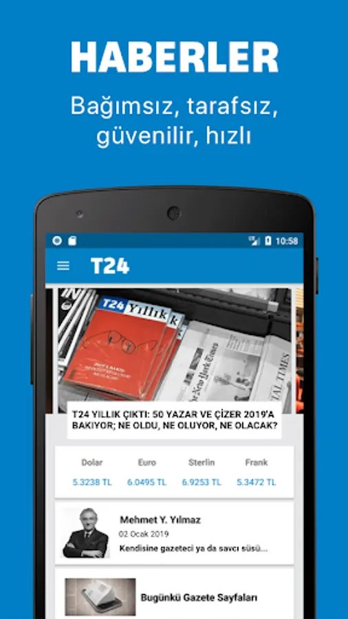 No opinions and beliefs putting the publication policy in front of Journalism, files, interviews, the author team of leading commentators and analysts located in one of Turkey's most trusted few news channels T24 comes across to the reader with Android apps.