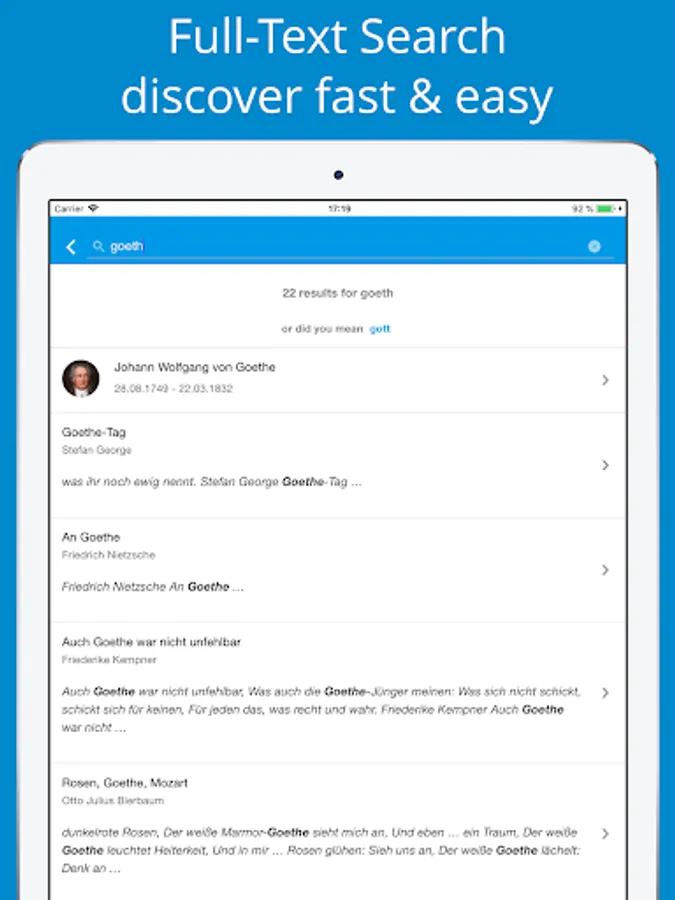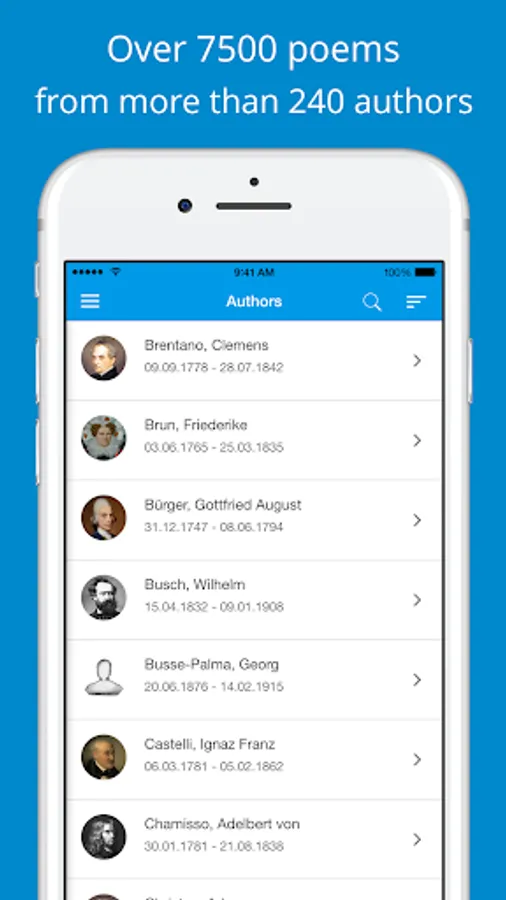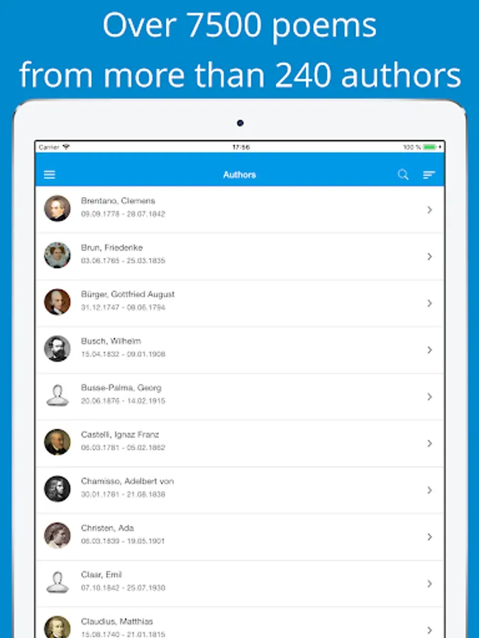 With OperationMedia’s german poetry app you gain access to over 7500 poems by more than 240 different authors.